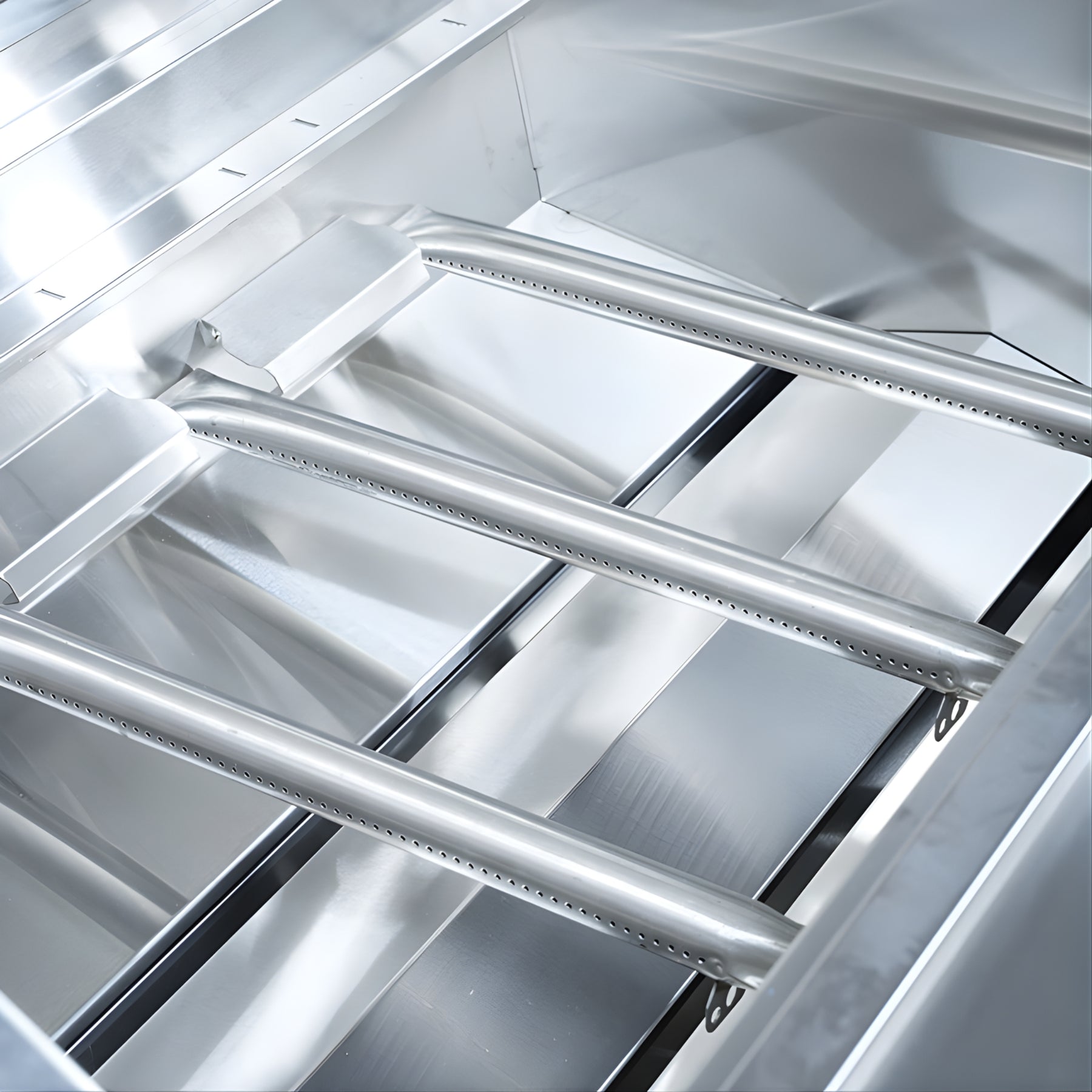 The Built-In Gas BBQ Grill with Infrared Burners is designed for premium outdoor living in Dubai. Constructed from high-grade SUS 304 stainless steel with a durable powder-coated finish, this grill delivers exceptional heat output, safety, and longevity — ideal for villas, gardens, and custom outdoor kitchens.