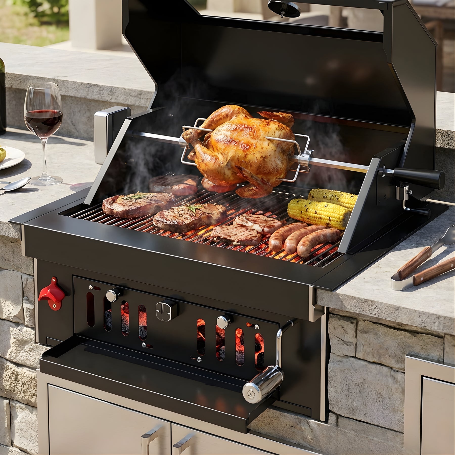Black Stainless Premium Built-In Charcoal Outdoor BBQ